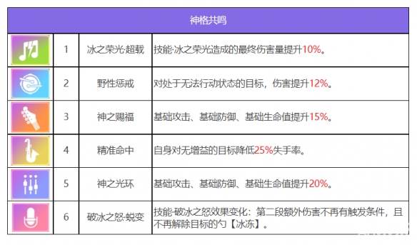 冰之荣光则能对敌方全体造成两段伤害,第一段为目标施加【冰冻】或【速度下降】状态,第二段则对拥有【冰冻】或【速度下降】状态的目标造成额外伤害。
