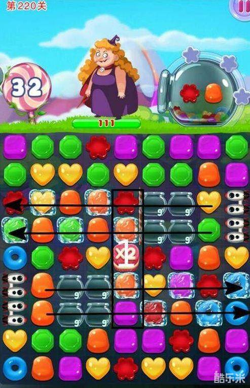 宾果消消乐220关主要任务是收集红色、橙色糖果共111个。这一关有女巫,这个坏家伙大家都很熟悉了,关卡每5关就出现一次。本关女巫一般每隔五步会随机扔出3个冰块做为通关障碍。一次多消本关收集物,女巫就会被打晕,无法施魔法。以及巧克力棒,它是隔绝板,糖果在巧克力棒上撞击才可消除它。下面我们一起来看一下宾果消消乐220关是怎么通过的吧。