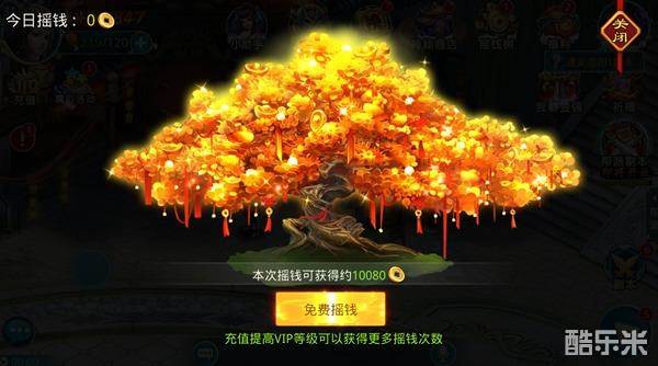 2.玩家每天可免费进行一次摇钱获得铜币,之后需消耗一定元宝获取一定次数摇钱;