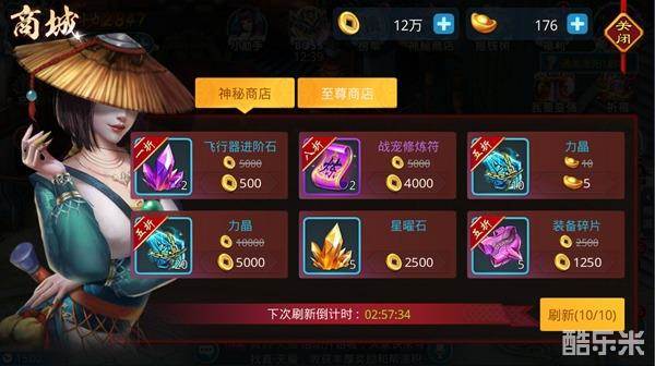 神秘商店每次刷新有概率出现折扣物品,玩家可以通过元宝或者铜币购买,每个物品可购买一次;