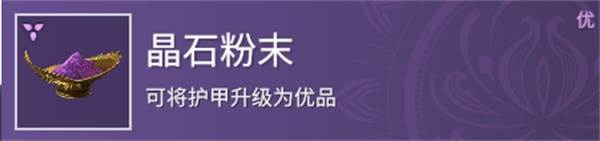 晶石粉末:可将护甲升级为优品。