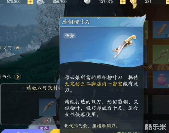 2、然后根据任务指引和穆云娘对话给予燕翎柳叶刀。