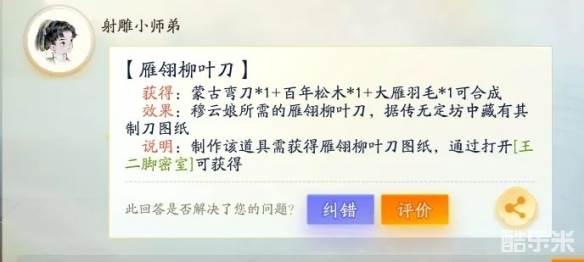 2、材料一:雁翎柳叶刀,在王二脚店密室获取,王二脚店密室进入方法。
