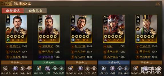 本套三皇太史慈荀彧是标准的单C阵容,在防守方面先礼后兵一夫当关的曹操可以充当大前排,让对面不好突进,而且老当益壮的刘备在桃园结义后 能分担后排大量的压力,孙权和荀彧作为辅助位给到太史慈buff加持,太史慈借助三皇的加持保护,利用自身的连击高爆发,走位点杀对方关键武将。