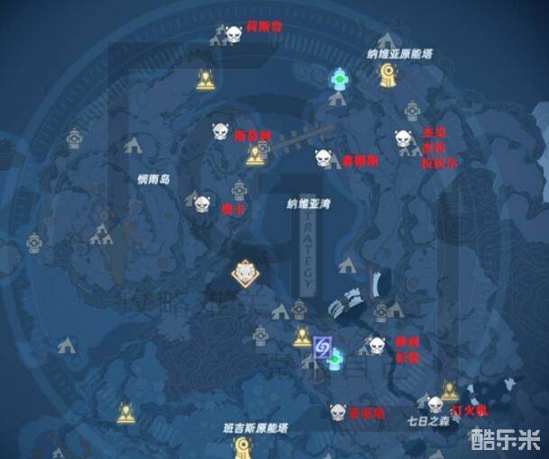 3、纳维亚湾、纳维亚原能塔、七日之森。