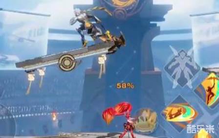滑动并长按普攻的话能打出两段猛击,第一段会将敌人抛至空中,第二段会将敌人重重砸下,他的猛击有两个比较特殊的机制,一个是虽然出手的动作比较慢,但是全程都是霸体的效果,第二个是如果对手在板外被二段猛击命中的话,会被直接砸出界,所以猛击非常适合用来迎击试图扳回的对手。