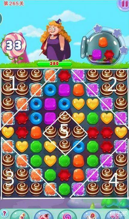 宾果消消乐265关主要任务是收集紫色、红色、橙色糖果共280个。本关难度系数不大,主要破除区域1、2、3、4、5巧克力球所设的障碍,或者巧妙利用巧克力球特性在区域1、2、3、4形成特效,增加后期通关几率,记得不要放过任何一个特效,后期通关就不是问题。下面我们一起来看一下宾果消消乐265关是怎么通过的吧。