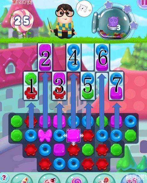 宾果消消乐267关主要任务是收集3个小象软糖。上面七个小区域的双层水晶糖里隐藏着三个小象软糖,需要用特效试探出它们的准确位置后再进行定点攻击,特效一般在下方区域进行组合,线型特效的攻击方向已经标示。本关说白了就完全是要依赖特效打过关的。下面我们一起来看一下宾果消消乐267关的通关攻略吧。
