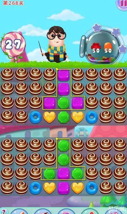 宾果消消乐268关主要任务是收集红色糖果和橙色糖果各50个。甜甜的巧克力球在这一关成为了我们的阻碍。我们需要把糖果在巧克力球周围进行碰撞,这样巧克力球就会变成相应颜色的糖果。图中区域我们可以根据自己需要选择横向消除或者纵向消除,这样就可以很顺利的消灭巧克力球,从而节省步数。下面我们一起来看一下宾果消消乐268关是怎么通过的吧。