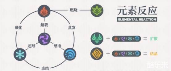 1、元素反应分为有系数元素伤害反应(如融化、蒸发)、无系数元素伤害反应(如超导、超载、感电、燃烧、扩散、碎冰)和无伤害反应(如结晶、冻结)。
