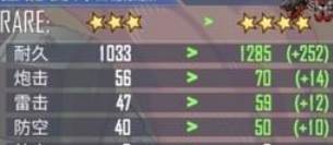 先看看属性和武器效率,老样子125级好感度爱,耐久6146、炮击303、雷击259、防空220、装填185、命中138、机动68、航速26、幸运50。主炮效率150%鱼雷效率140%防空炮效率100%。