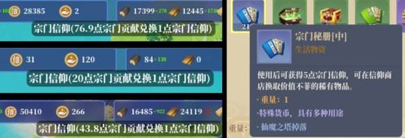 2. 也可以通过历练/副本一获取的宗门秘册获取,有些活动只能在宗门里完成,参加这些活动可以获得奖励,包括宗门信仰点数。