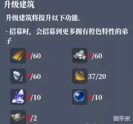 聚英阁需要60个2级材料和不等的4种特殊材料,才能进行升级。