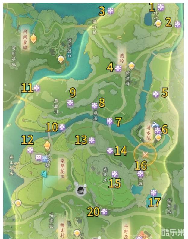 6.第五个在析津驿站传送点右下方小桥对面空中。