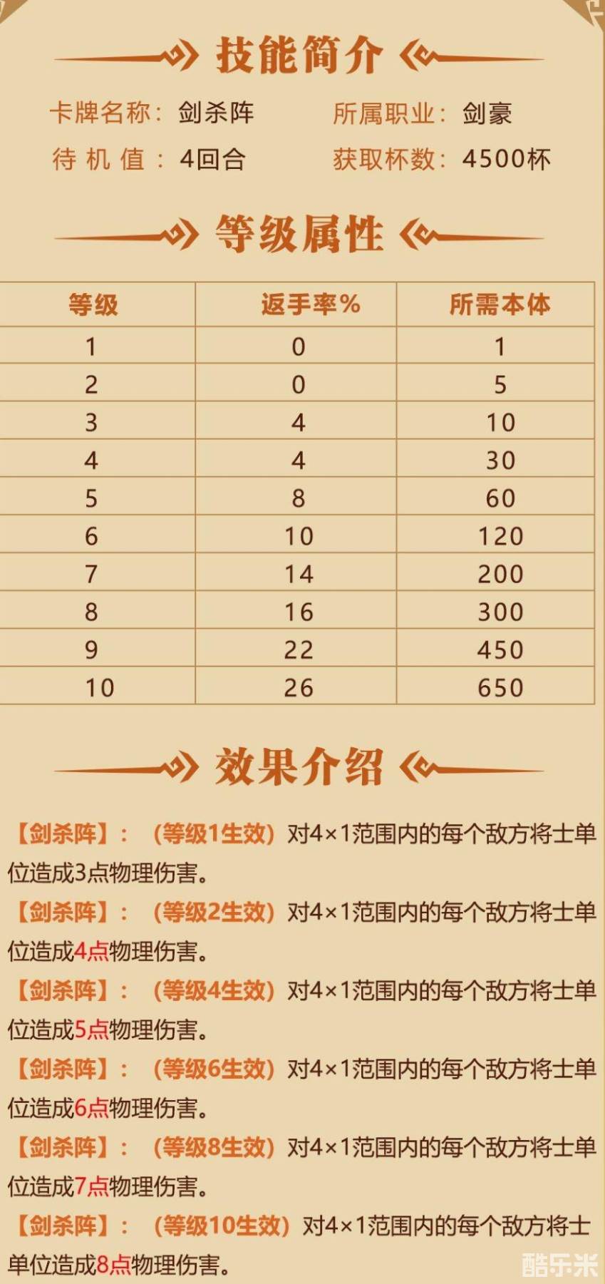 最后编辑于1年前我是小奇兵采用创新的乐高积木风格打造三国武将,画面轻松休闲,剑豪、法尊、道圣、神箭四大主角转职系统,各职业技能不少,其中剑豪技能剑杀阵怎么样呢?这是一个蓝卡普通技能,下面小编就给大家带来了《我是小奇兵》剑杀阵技能图鉴,一起来了解一下吧!