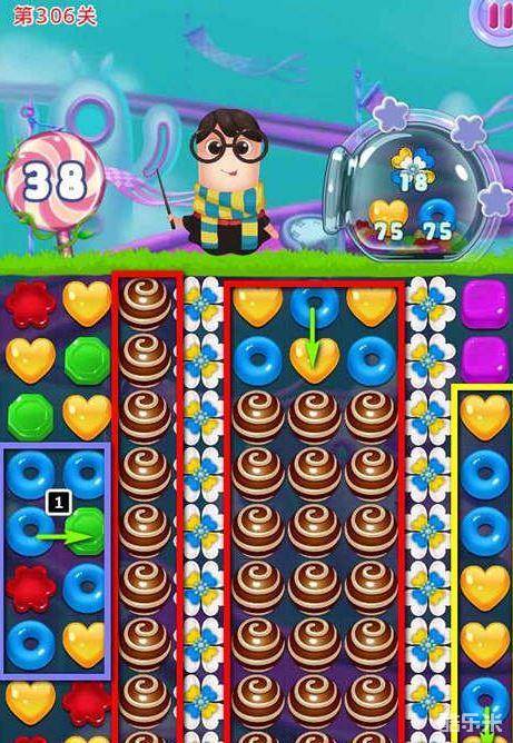 宾果消消乐306关主要任务是收集18个四叶花,75个黄色糖果,75个蓝色糖果。开局我们可以看见本关有很多巧克力球,但是看到上方可以三消的糖果,我们在心里就可以偷着乐了,因为在三列巧克力球上三消,之后它就会自动消除,可以说不费吹灰之力。下面我们一起来看一下宾果消消乐306关是怎么通过的。