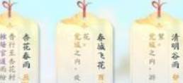 首先在“风雅宋”中点击“吟咏”,然后进去后点击节颂,就能看到本次的清明任务啦,小猪也是看到了有宝宝私信小猪问这个,所以今天特意给友友们分享一下,其实这六个任务都非常简单,稍微仔细耐心一点就都能轻松拿下啦!咳咳,记笔记啦~~【第一个任务:春分花田】任务时间:7:00―11:00中都地图找到梅山村,马家脚店马掌柜后边的屋子,侧边的连廊中有一个书案,走到书案旁边点击吟赋节气便可。然后按照给出的提示依次点击对应的物品就好了!