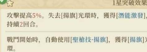 技能【圣枪·朗基努斯】:范围输出并召唤旗帜,提升友方防御与个人能力。