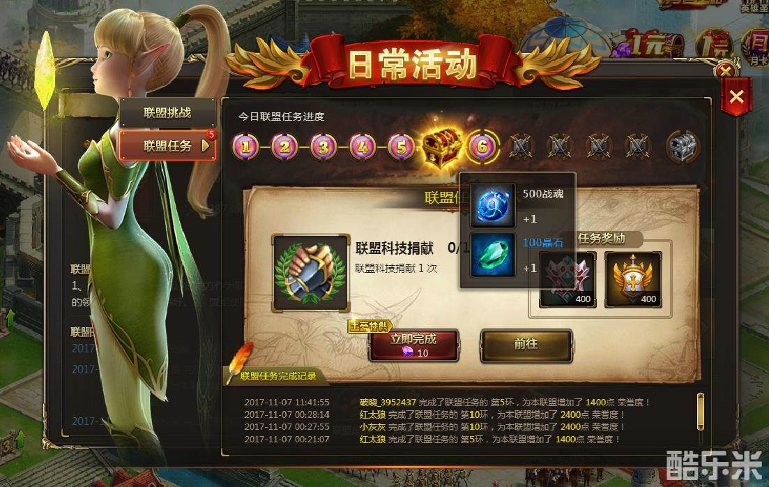 在第5环与第10环完成之后还能获得大量资源奖励、金币,联盟礼包和英雄经验。