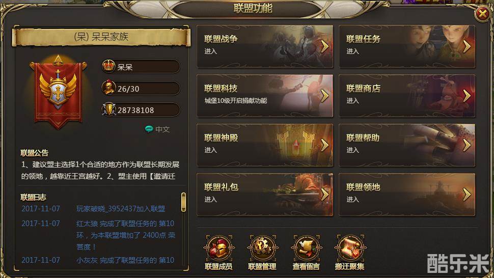 联盟对于新手前期的快速发展帮助十分巨大,各位领主,还不赶紧抱紧你们服务器的大腿,一起装逼一起飞!