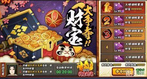 火影忍者手游财宝大争夺活动今日正式开启,奖励非常不错,有金币也有招募券,下面为大家带来火影忍者手游财宝大争夺活动玩法详情。
