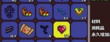 6.当我们的红色生命值达到最大上限之后,我们即可开始使用生命果道具,生命果道具是一个心形的果实,我们在将其放置到背包的快捷使用栏中使用