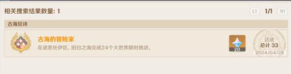 枫丹4.6共有35个「限时挑战」,10和26号不计入成就数,完成33个限时挑战即可达成成就《古海的冒险家》。