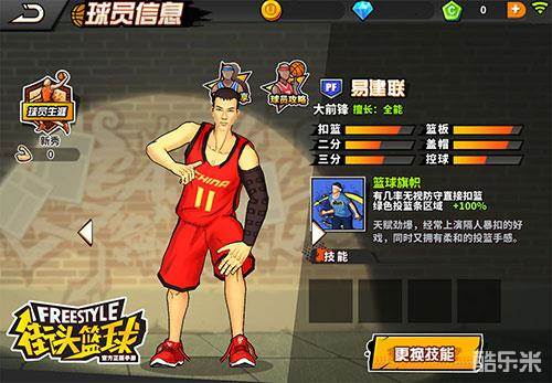 易建联经历了数年NBA与CBA的联赛洗礼,在他成为CBA篮球一哥之后,却再度迎来了与街头篮球的不解之缘。在游戏中,易建联的游戏人物职业为PF(大前锋),在球队中的定位也与现实中完美吻合。并且,研发团队还按照易建联的真人形象与篮球的特殊能力,为他量身制作了一套专属于他的时装与篮球技巧,真实还原他在球场中的巨星风采。在游戏中,易建联凭借儿时街头篮球的记忆与高大的身躯,让他在比赛中拥有多种多样的进攻手段,如篮下暴扣、两分球、三分球等,在三分球方面他可谓是最准的大前锋。同时,易建联篮下的强大篮板能力与盖帽能力使得他完全不输于其他C位(中锋),实在是一位赛场上不可多得的多面型选手。