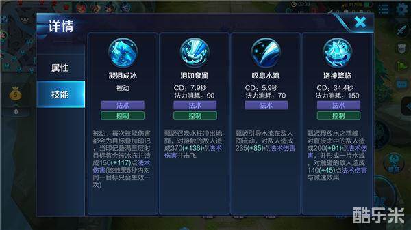 技能介绍:甄姬释放水之精魄,对直接命中的敌人造成高额的法术伤害,并形成一片水域,并对触碰到的敌人造成一定法术伤害与减速效果。