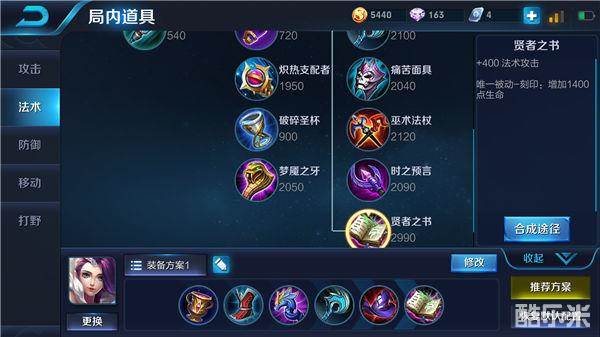 六神装:圣杯+冷静之靴+回响之杖+冰霜法杖+博学者之怒+贤者之书