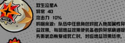 呜咽余波:队伍中任意角色对敌人施加属性异常效果时,为装备者提供1层增益效果,每层增益效果使装备者的异常精通提升30点,最多叠加4层,目标从失衡状态恢复或死亡时,对应增益效果结束,每层效果单独结算时间。