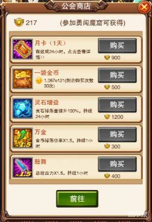 公会商店就是如此的存在,里面可谓是琳琅满目,月卡、金币、战力鼓舞统统都有。积攒够荣誉勋章,挑选心仪的奖品吧。