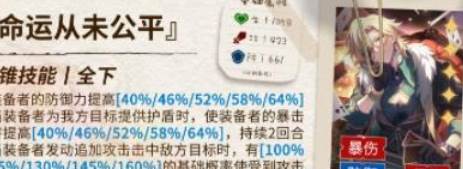 常态提供大量防御力,还能提高装备者的受击概率,保护队友尽量少受伤,并且变相给装备者提供更多的受击回能,使其终结技循环得更快一些。受击时还会短时间提高防御力,让连续受击时的承伤能力变得更高。对砂金来说还能提高伤害和护盾量。是当前版本纯生存型砂金(不考虑输出和辅助能力)的优质选择。