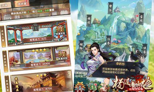 《杨过与小龙女》是一款竖版武侠手游,将金庸经典《射雕英雄传》《神雕侠侣》《倚天屠龙记》搬上游戏屏幕,带玩家重忆金庸主角的侠骨柔情与爱恨情仇。 拥有江湖冒险、拼酒拜师、华山论剑、据守襄阳等玩法,将少林寺、绝情谷、桃花岛、峨眉山、光明顶等经典场景一一复刻,配合2D骨骼动画技术应用,让游戏战斗技能更加绚流畅,只为带你走一遭恩怨情仇、红尘纠葛的射雕江湖路!