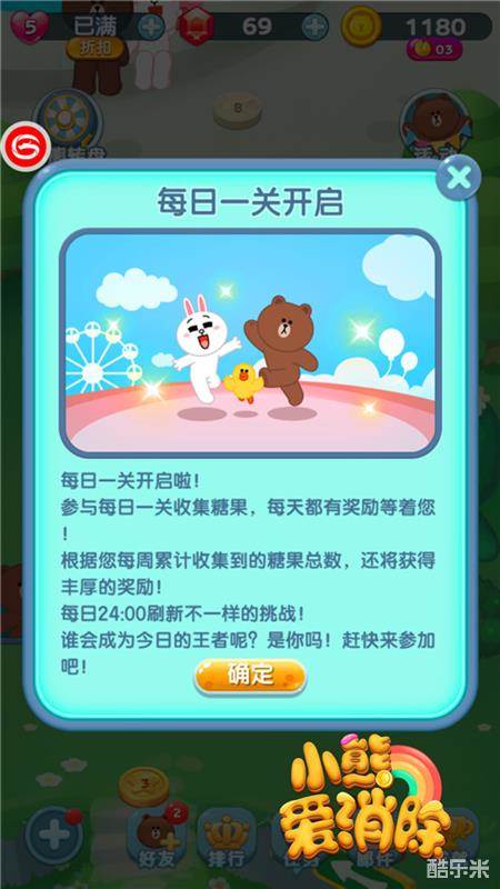 更为厚道的是,挑战“每日一关”并不会消耗爱心,玩家们可在此尽情挑战。而在“每日一关”中获得的道具金币均可以在普通关卡中使用,让玩家游戏更轻松,充分享受《小熊爱消除》带来的乐趣。所以,每天打开游戏,千万不要忘了打开“每日一关”哦。