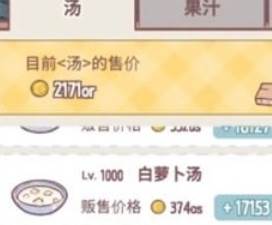在这款游戏中,料理的种类琳琅满目。其中,汤品是不可或缺的一大类,也是玩家们的研发重点。游戏初期,玩家可以从简单的蔬菜汤入手,利用易得的食材如红萝卜、卷心菜等制作。随着游戏的深入,汤品的等级可以不断提升,不仅价格逐渐攀升,品质也会得到质的飞跃。升级后的汤品不仅售价更高,还能迅速累积财富,同时赢得大量好评。