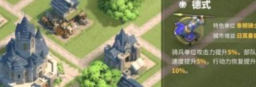 在万国觉醒中,如果玩家选择了德式文明,可解锁特殊的单位——条顿骑士。该文明对日耳曼城市具有加成,并会让全部的骑兵攻击里和部队训练速度增加百分之五,行动恢复力增加百分之十。下面和酷乐米小编一起来看看吧
