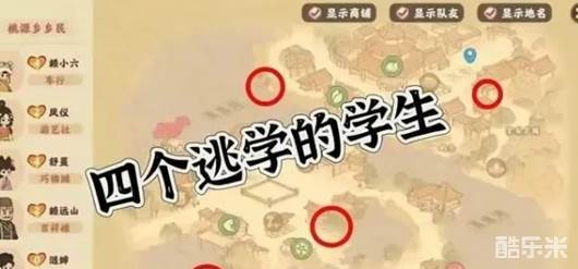 《桃源深处有人家》集体逃学是一个隐藏任务,玩家仅需在桃源乡的桃隐书院找到4名逃学的学生就可以完成任务了,有很多小伙伴不知道集体逃学怎么做,接下来酷乐米小编带大家一起来看看吧。
