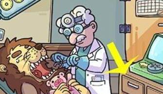 《脑洞大侦探》牙医我们可以看到主要有大型设备,都是牙医看牙时候的设施,牙医正在给一个狮子看牙,狮子怀里抱着个玩偶,上面有照灯器,帮助牙医更好的观察牙齿情况,旁边还有个显微镜,托盘里针管镊子之类的。那这一关应该怎么过呢,下面和酷乐米小编一起来看看吧