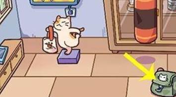 8、奖杯的旁边有三个秤砣,将秤砣放进旁边猫咪的包里,猫咪从蓝色方块离开后,点击方块收起,最后获得画作,点击收起。