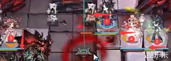如图所示,开局直接部署【①煌】向左,随后部署【②流明】向左提供治疗。