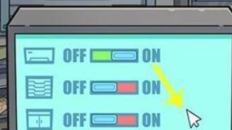 7、电脑打开后出现三个图标,分别是空调开关,窗户开关,和门的开关,用双指将窗户开关向右滑动打开。