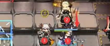 如图所示部署【①煌】向右,【②夜莺】向下,【③塞雷娅】,随后挂机即可。
