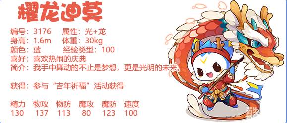1.洛克王国耀龙迪莫技能配招:龙之传承+破魔圣光箭+狂乱+福运年年