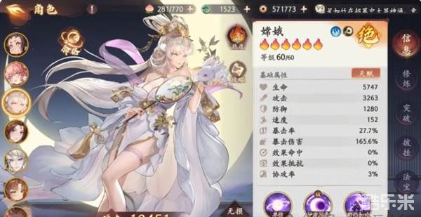 嫦娥,全体伤害加攻还有自我增益。输出第一的同时还有一定的防御能力。还能给同排加增伤buff。