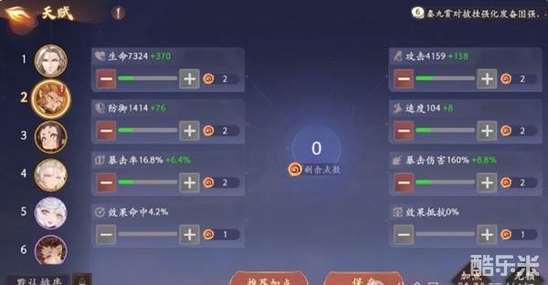 最后编辑于1年前在西游笔绘西行游戏中,天赋加点策略应根据角色的职业定位、队伍配置以及玩法策略来决定,以下是游戏天赋加点推荐攻略。