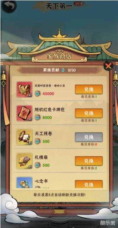 山洞,笼子,萌萌果之类的日常材料也没必要换。随机红色卡牌也不建议换,因为随机性太大,需要贡献太贵且群侠谱加战力太少。