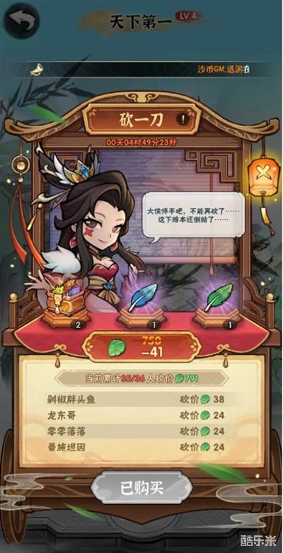 每天会随机刷新不同价位的材料,家族成员可以点击砍价,最高甚至可以砍成负数,白嫖叶子和材料。