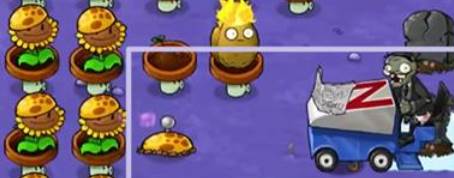 4、雪橇僵尸的处理方法是用土豆雷或者大蒜花,如果阳光充足的话,我们也可以使用向日葵炸弹。