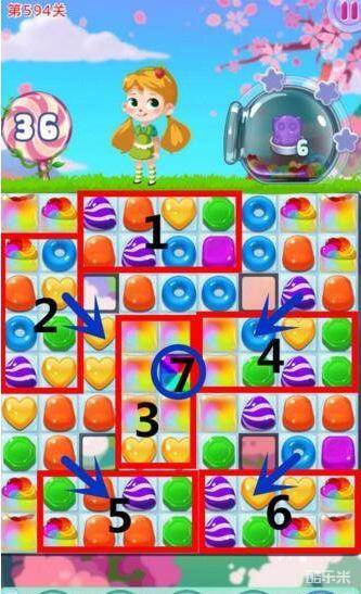 宾果消消乐594关如何消除更快过关,本关任务,收集6个小象软糖,本关步数36步,本关重要区域7个,下面来看看如何找到开局技巧,消除过关。